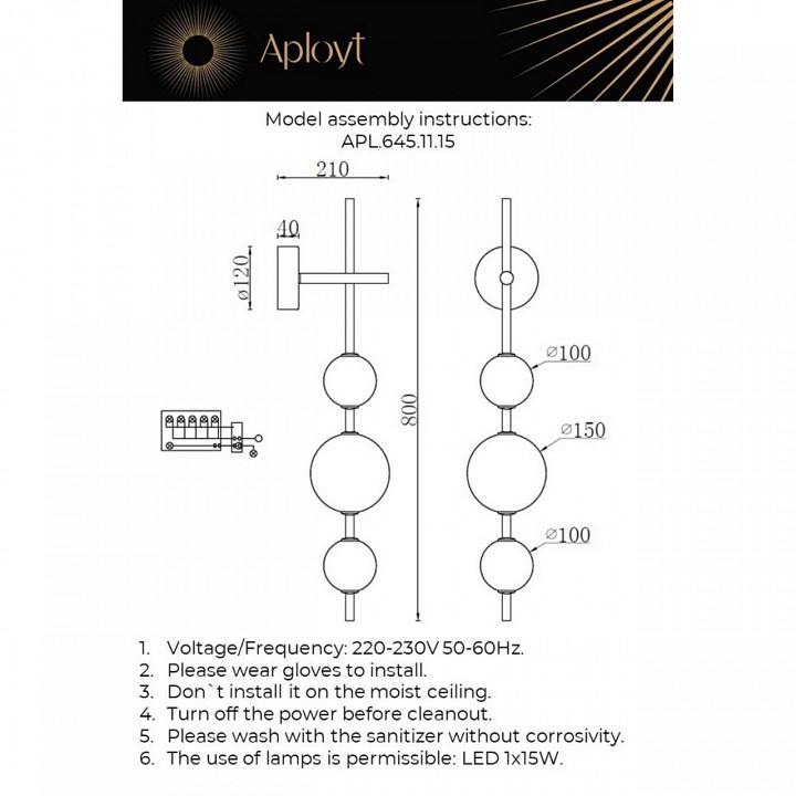 | Альтернативное название | Бра Aployt Diego APL.645.11.15 |