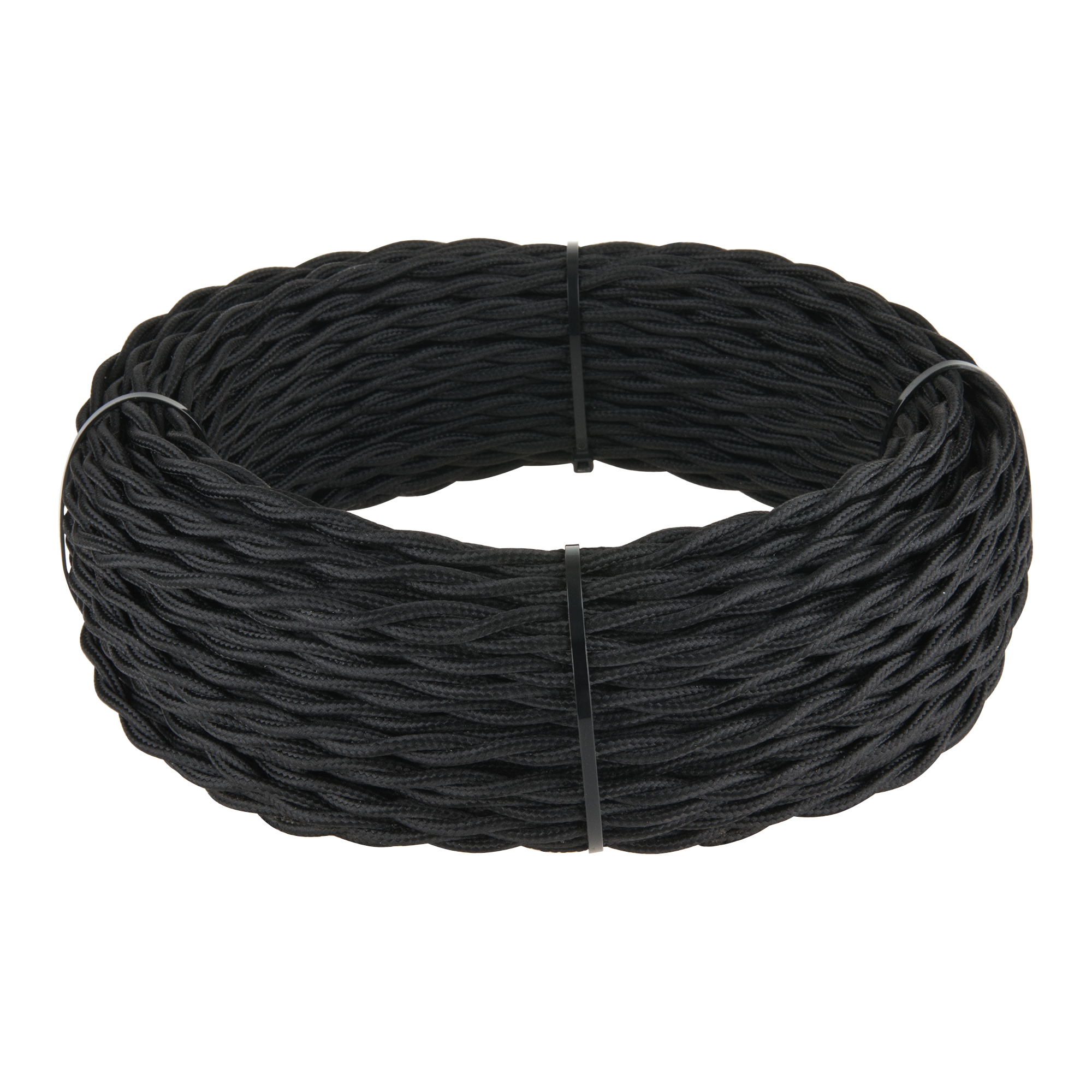 Ретро кабель витой 2х1,5 черный 20 м. Многожильный медный провод обеспечивает гибкость кабеля и его высокие электротехнические характеристики. Наружная оплетка кабеля имитирует натуральный шелк.