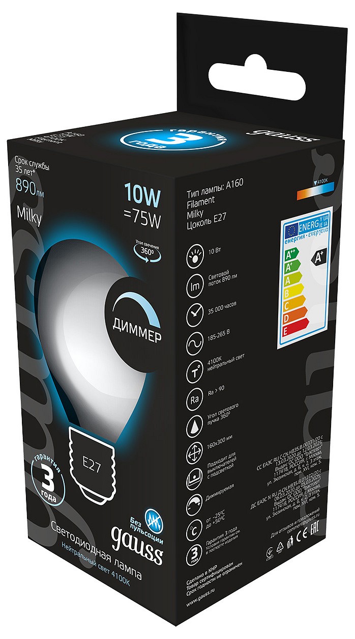 | Альтернативное название | Лампа светодиодная Gauss Filament 179202210-D |