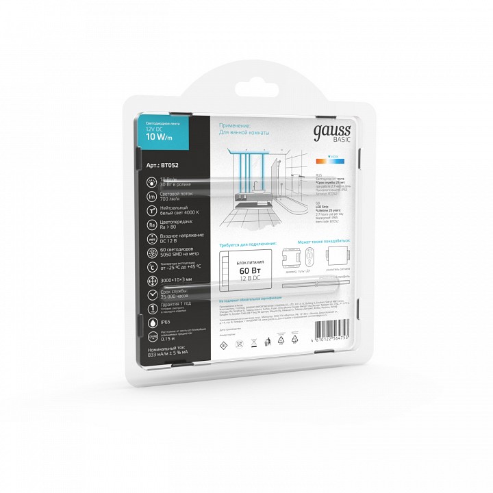 | Альтернативное название | Лента светодиодная Gauss Basic BT052 |