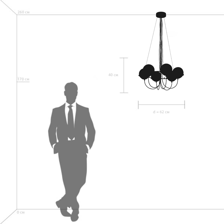 Высота min-max (см): 50-180; Ширина (см): 62; Вес (кг): 3,8; Кол-во ламп: 6хE14; Мощность max (W): 40; Цвет основания/цвет стекла или абажура: Champagne/White;