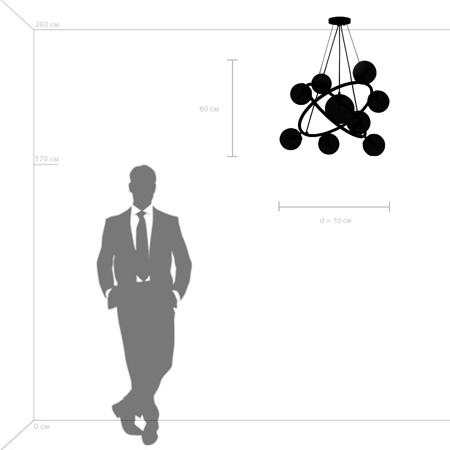 Высота min-max (см): 70-180; Ширина (см): 70; Вес (кг): 6,5; Кол-во ламп: 9хЕ14; Мощность max (W): 40; Цвет основания/цвет стекла или абажура: Matt Black;