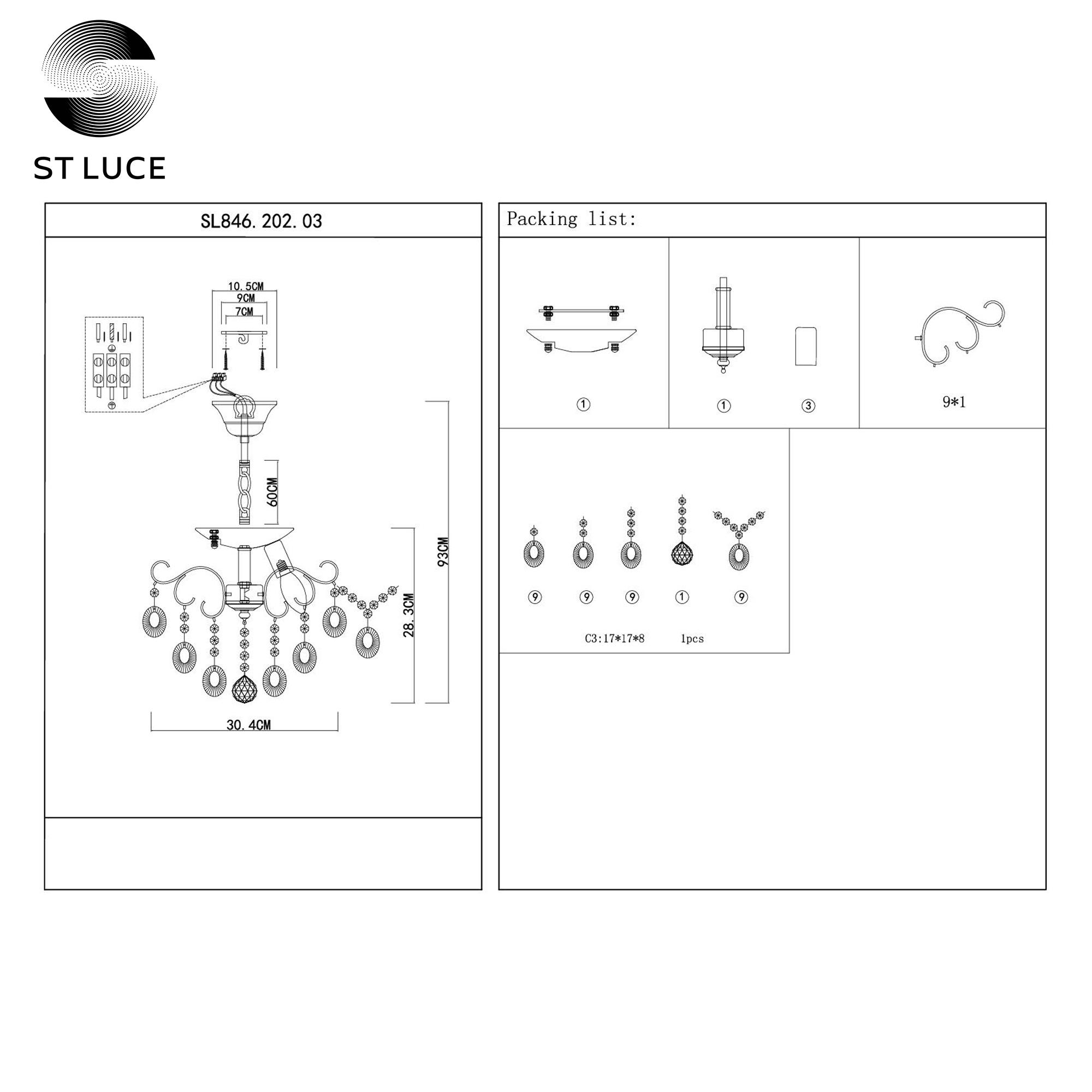 | Альтернативное название | SL846.202.03 Люстра подвесная ST-Luce Золотистый/Прозрачный E14 3*40W ORECCHINI |