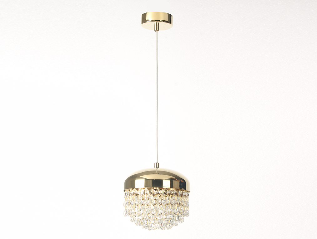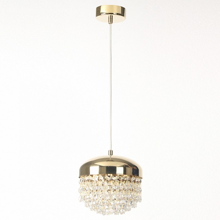 Подвесной светильник <b>NEWPORT серия 10900, артикул 10905/S gold</b>, цвет арматуры - Polished champagne gold, прозрачные хрустальные подвесы, размеры D15/250 см, цоколь G4 5*5W