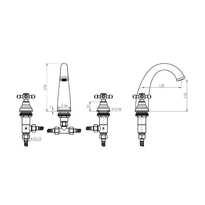 Смеситель для раковины на 3 отверствия Boheme MEDICI Presente 317-SW