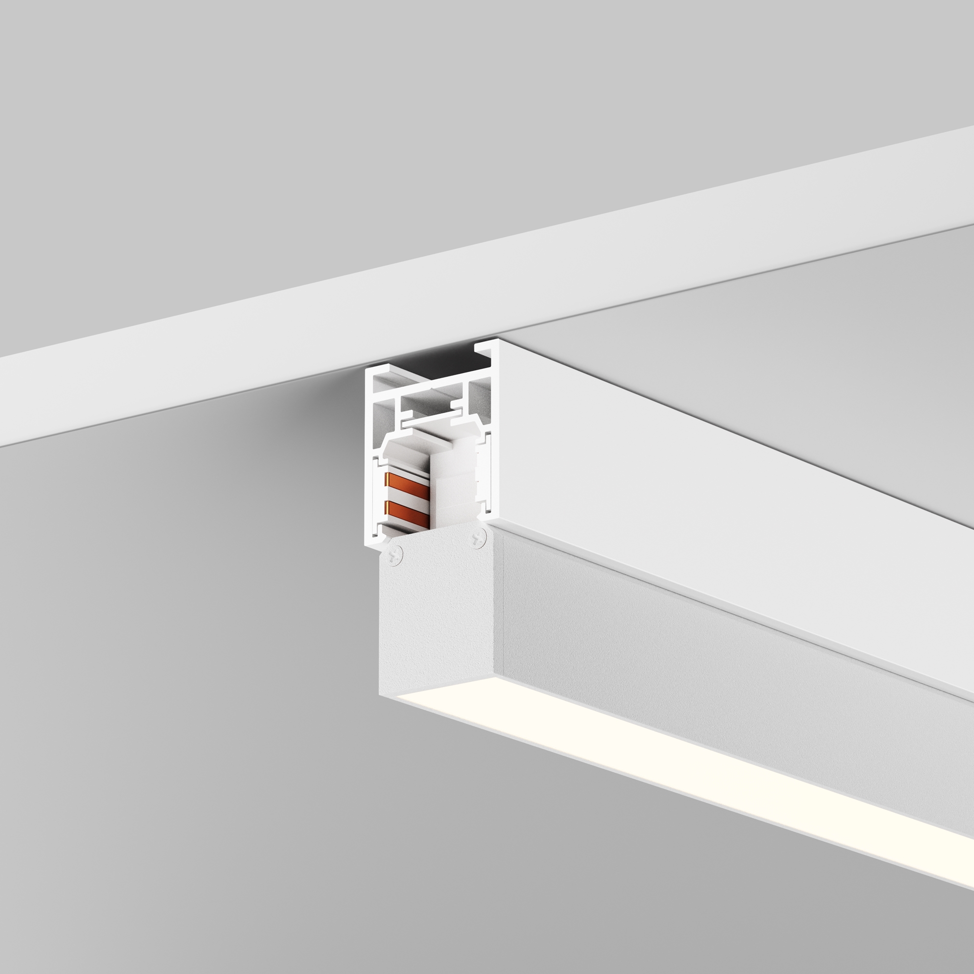 Комплектующие для низковольтной магнитной трековой системы Exility в черном и белом цветах. Разнообразие аксессуаров позволяет собрать свою уникальную конструкцию для накладного монтажа, подвесного, встраиваемого под гипсокартон и встраиваемого в натяжные потолки.