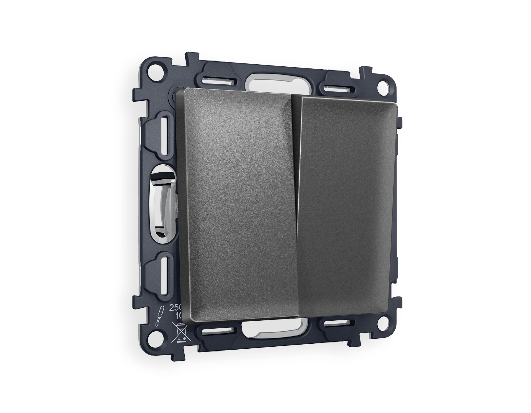 | Альтернативное название | Комплект механизма 2-клавишного перекрестного выключателя 10A-250V ALFA MA653030 Антрацит серый QUANT |